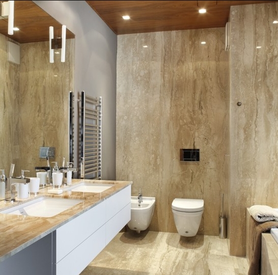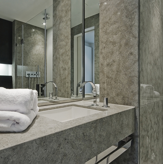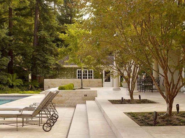 Floors, interior and exterior surfaces Granite and marble inside and outside.